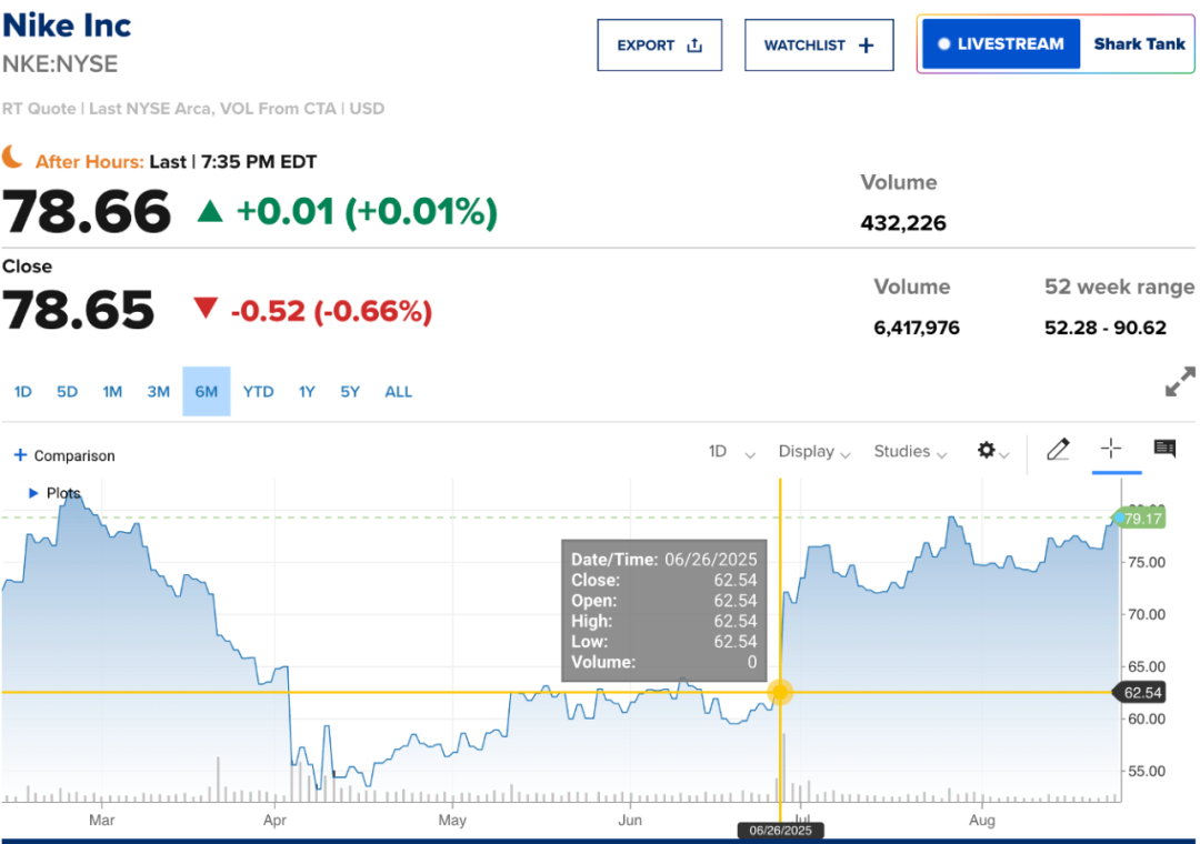 6月27日起,耐克股价明显回升